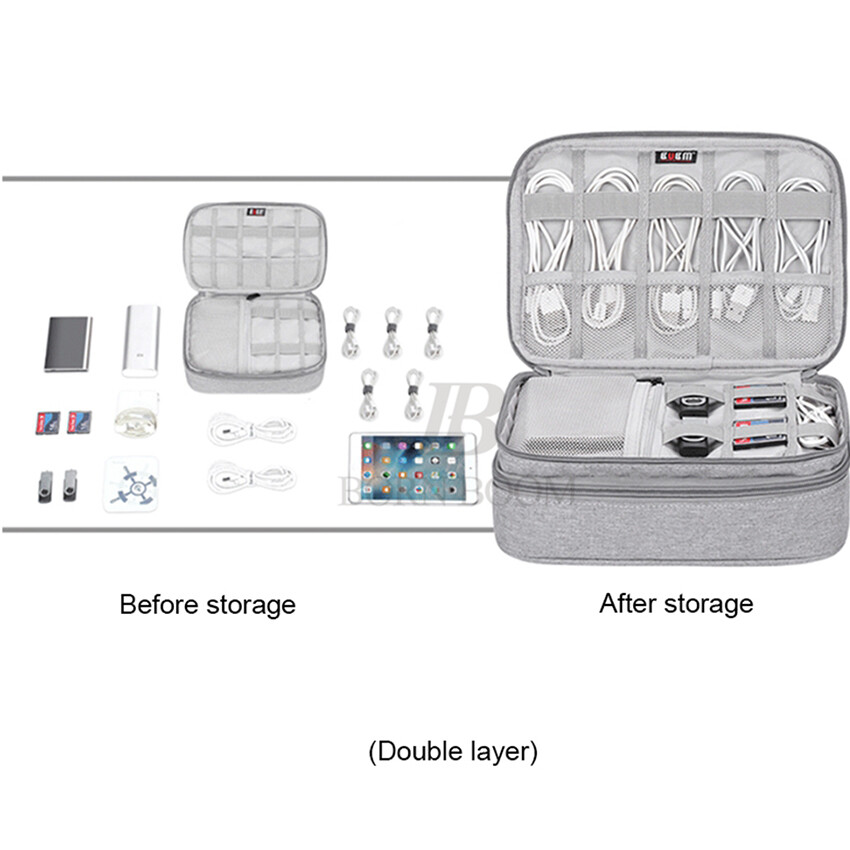 BornBoom Travel Storage Bag Portable Double Layer Gadget Bag Electronic Digital Organizers Waterproof USB Storage Bag Multi-function Large Capacity Cable Organizer Bag