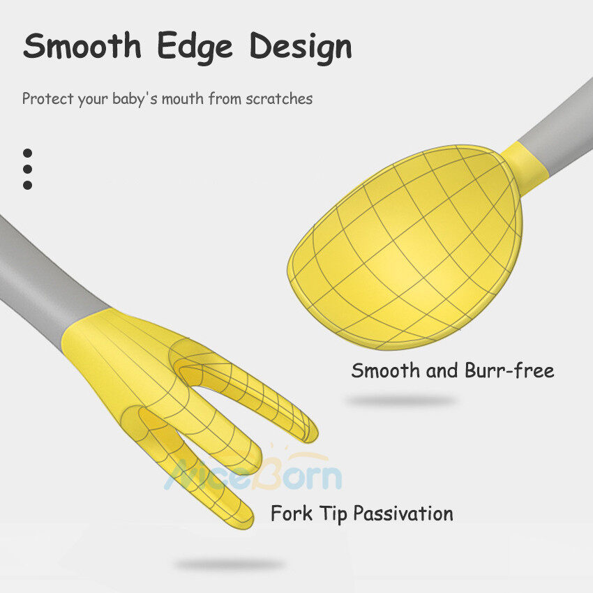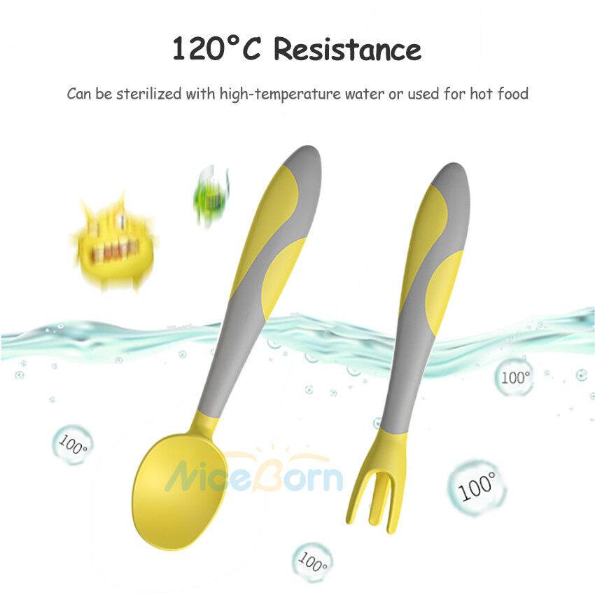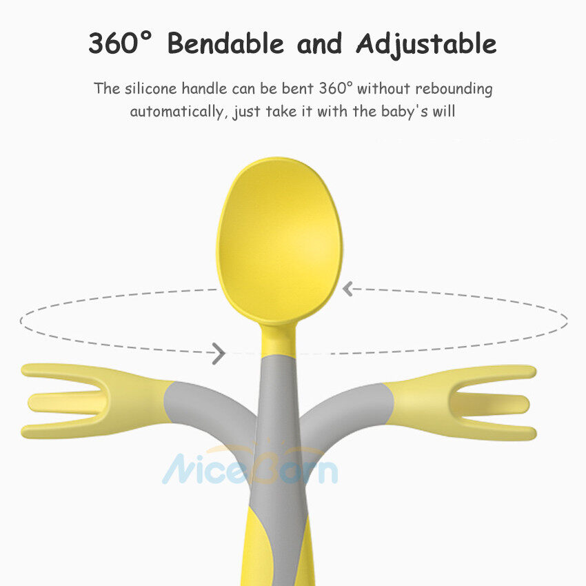 NiceBorn Bowl Spoon Fork Sets Baby Training Spoons Twistable Fork Spoon Sets Feeding Straw Bowls Children Training Tableware Sets Twister 360° Flexible Soft Spoons Elbow Spoons with Storage Box