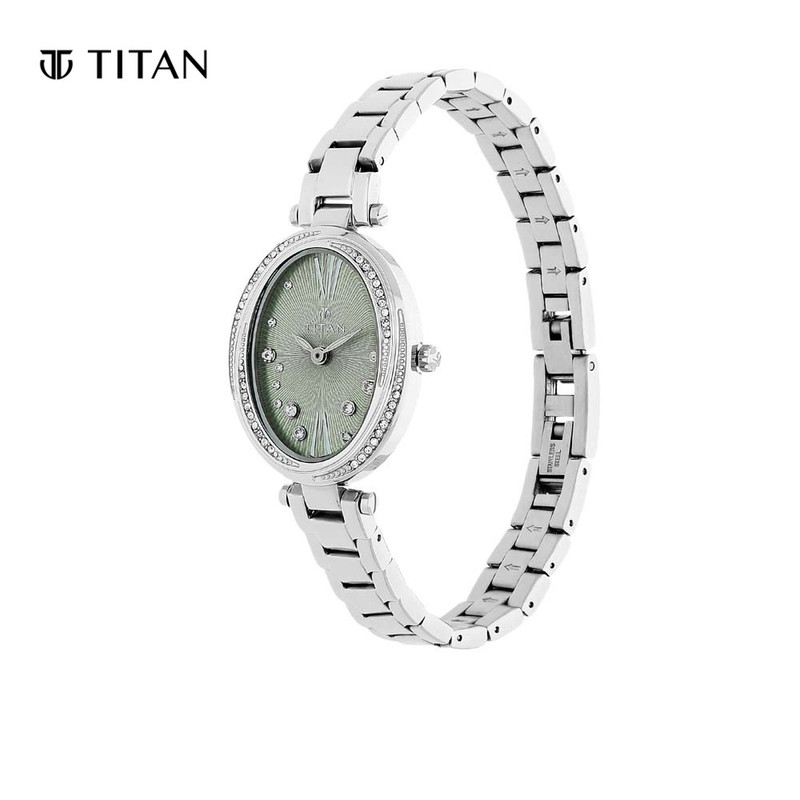Titan Green Dial Metal Strap Women's Watch 95025SM03