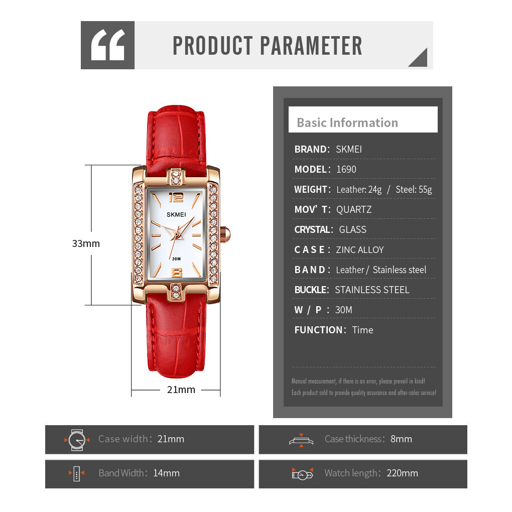 【10-Year Battery】SKMEI Women Fashion Watch Elegant Quartz Leather Stainless Steel Watch Waterproof Ladies Wrist Watch For Women 1690
