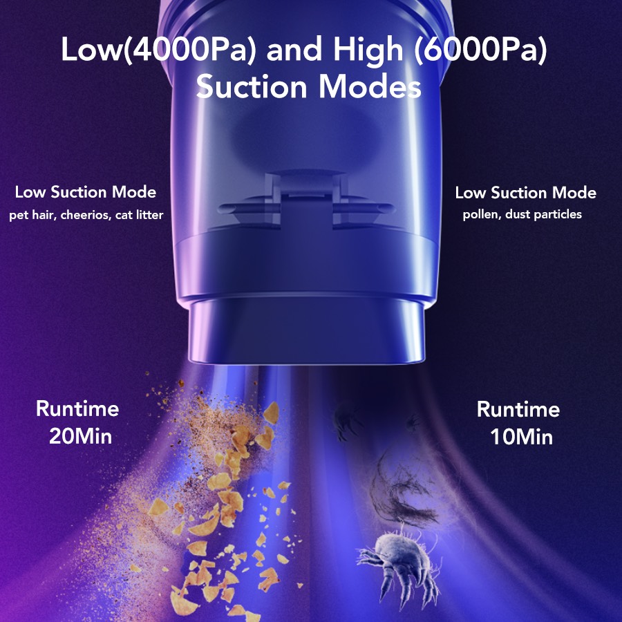• 6000Pa hurricane suction, high-speed drive fan produces strong power, vacuum cleaner gathers suction, instantly forms a vacuum vortex, dust is swept away.