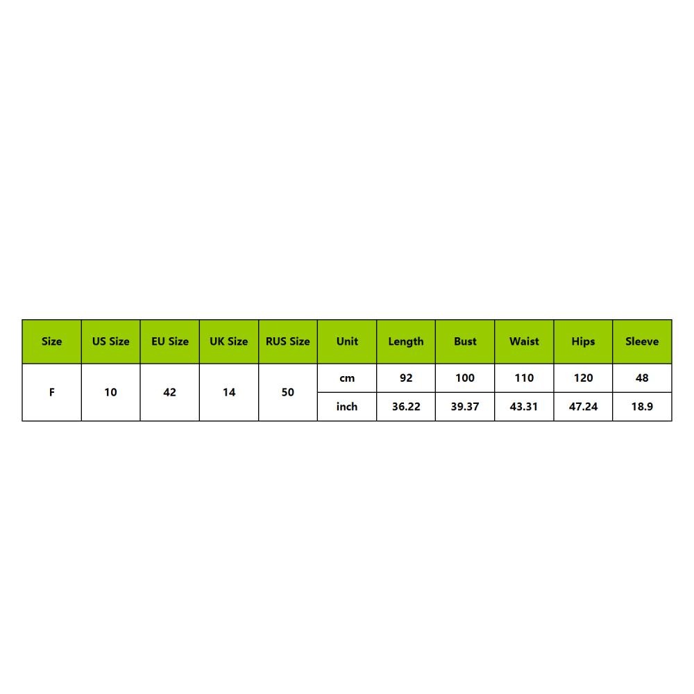 Size:F Length: 92cm; Bust: 100cm; Waist: 110cm; Hip: 120cm; Sleeve: 48cm Occasions: This bathing suit for women cover ups perfect for pool swimming, casual, tanning salon, cruise, beach, vacation, poolside, resort or water park ect.