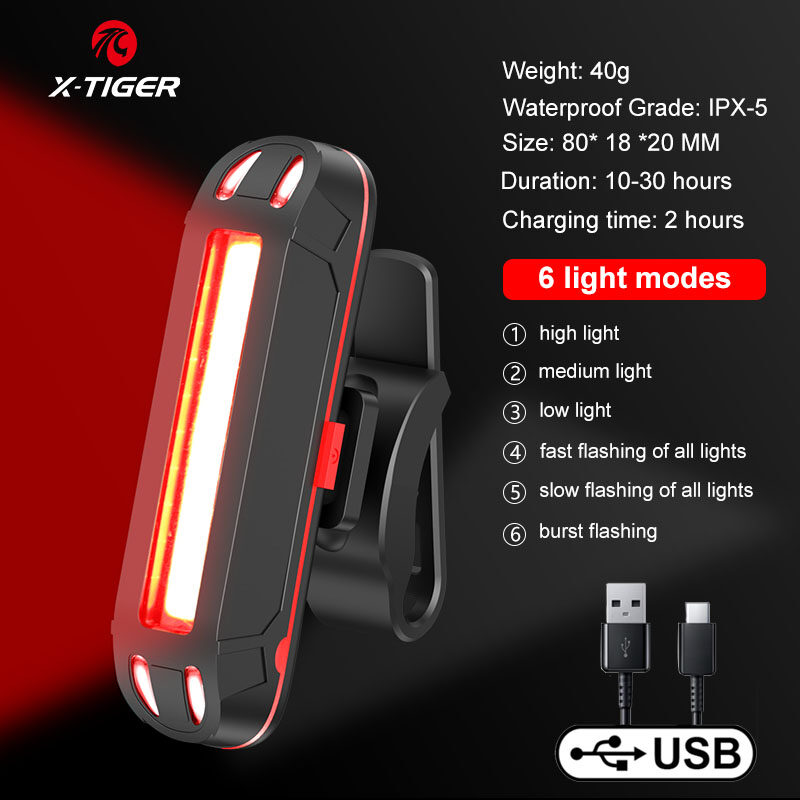 X-Tiger Bike Rear Light Super Bright Led Bicycle Light USB Rechargeable Seatpost Fork Light Safety Warning Bicycle Taillight X-Tiger Bike Rear Light Super Bright Led Bicycle Light USB Rechargeable Sea