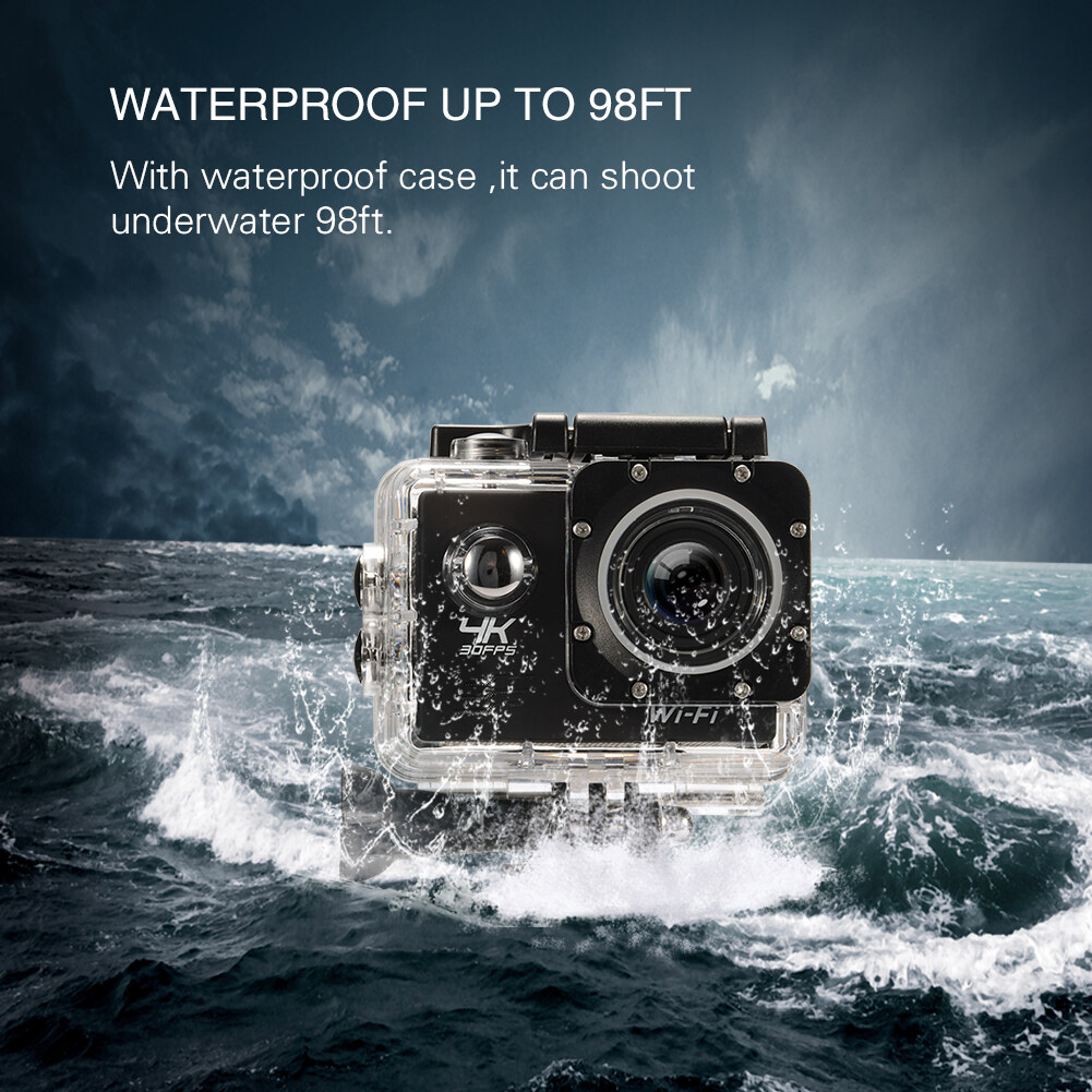Action Camera,4K Ultra HD WiFi Sports Camera 16MP 170 Degree Wide Angle 2.0 Inch Waterproof Diving Camera with 2 Batteries and 19 Accessories Kit Included Black