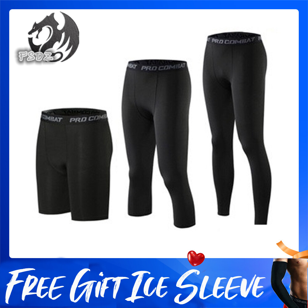 FADZ Pro Combat Short 3 Quarter Long Unisex Legging Tight Gym Running Fitness Adult Sport Pants Seluar Sukan S-3XL