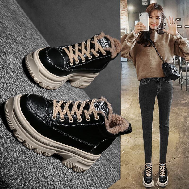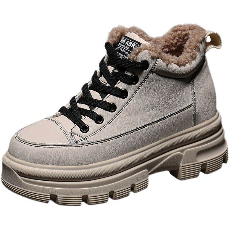 Elevator Dad Shoes Women's Shoes Autumn and Winter 2021 New Board Shoes Thick-Soled High-Top Shoes Genuine Leather Fleece-Lined Snow Cotton Shoes
