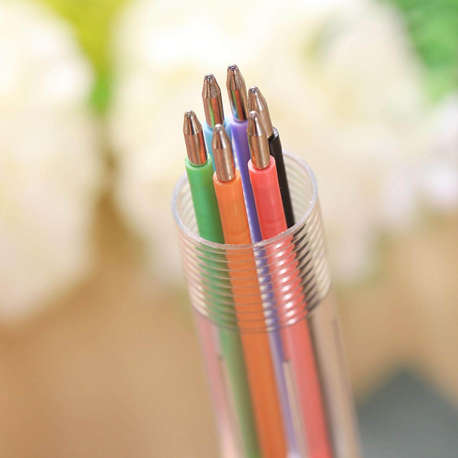 Material: Plastic + RefillLength: pen: 14 cm/5.51 inch; refill: 8.8 cm/3.46 inchRefill tip: 0.5 mmPackage:10 x Multicolor Ballpen