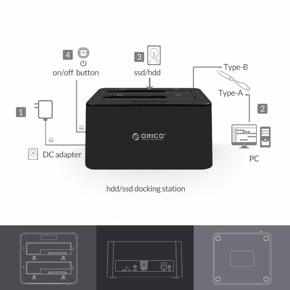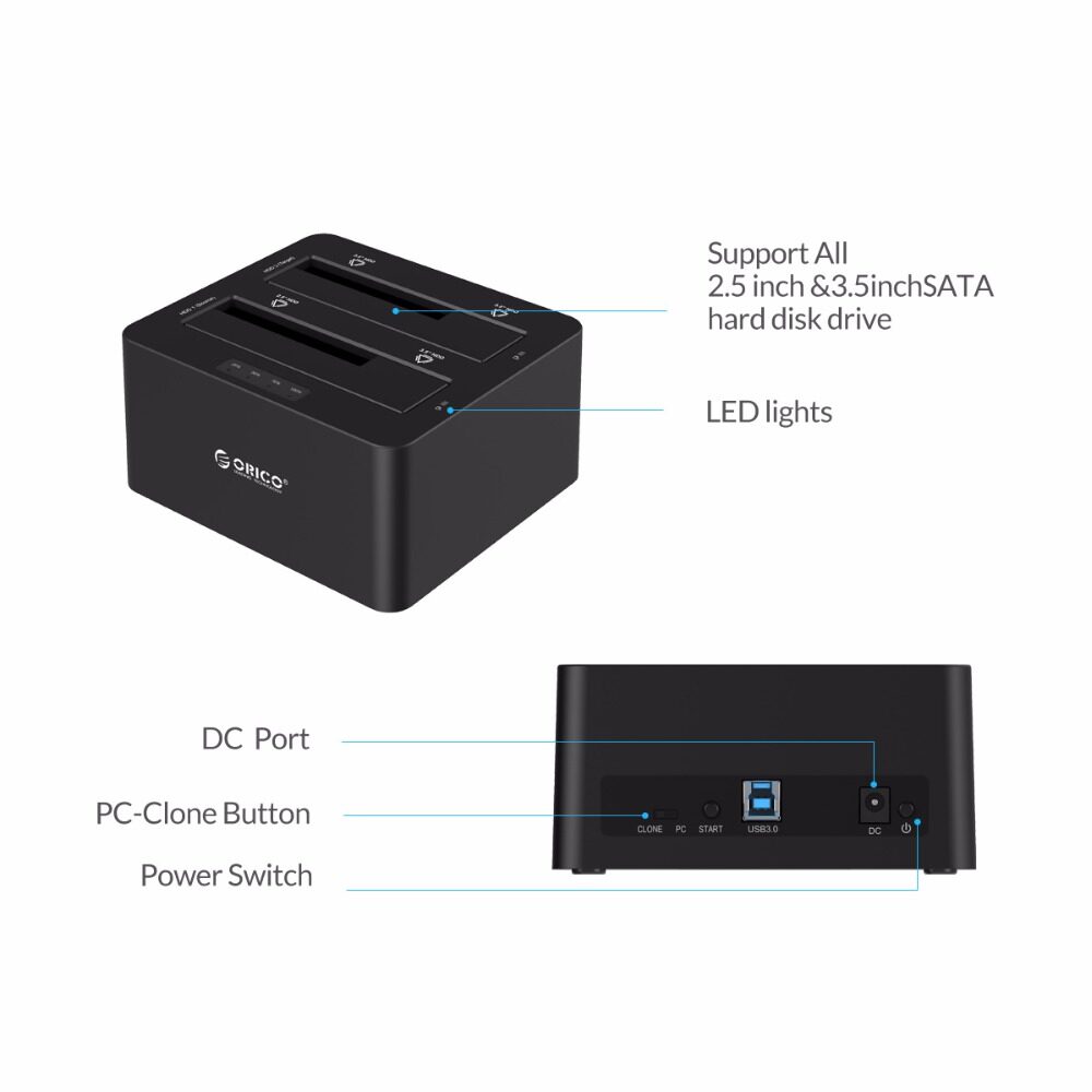*Item : ORICO USB 3.0 to SATA Dual Bay External HDD Docking Station for 2.5 & 3.5 HDD/SSD HDD Duplicator/Cloner Function [16TB*2 Support]