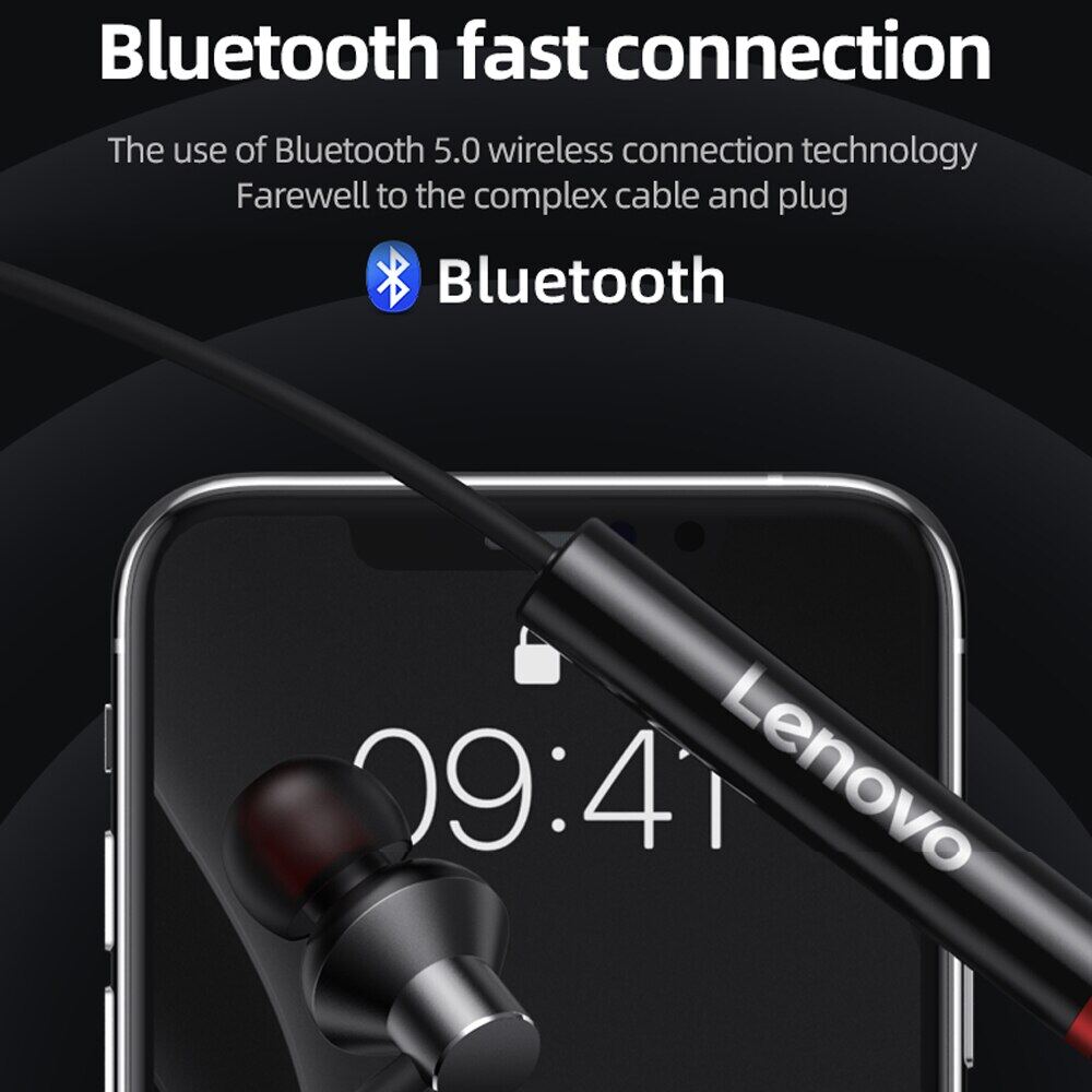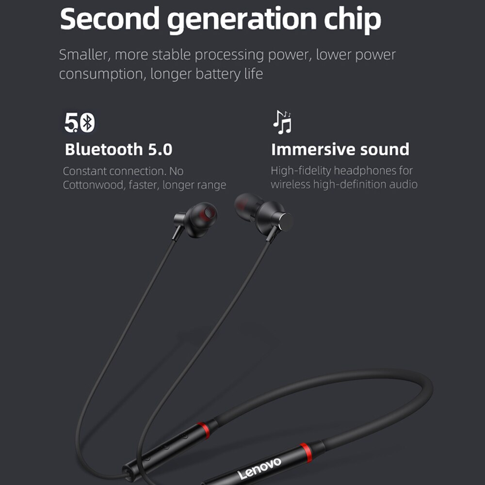 Lenovo Headphones Bluetooth 5.0 Wireless Headphones Magnetic Neck Headphones IPX5 Waterproof Sports Earbuds with Noise Cancelling Mic Running Phone Universal New