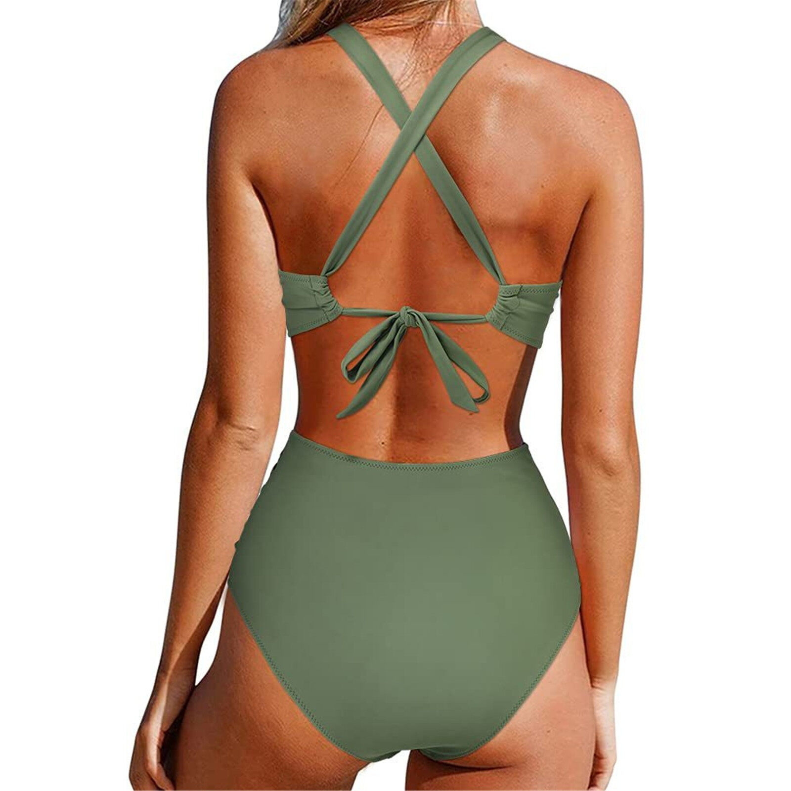 (Dickey)Hot Sale Women Front Cross Cutout One Piece Swimsuit Tummy Control High Waisted Monokini Bathing Suit