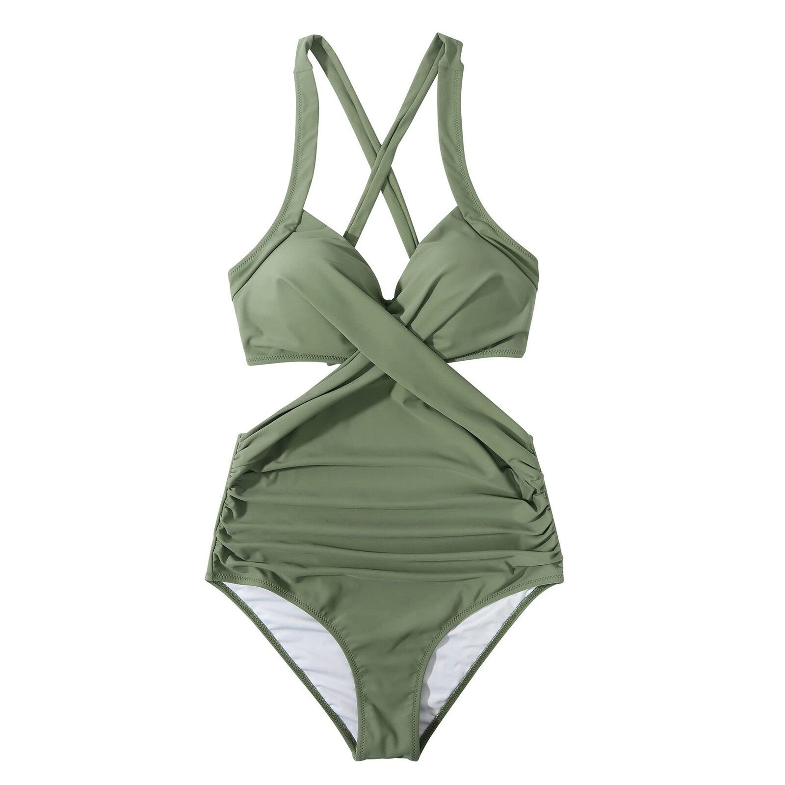 Women Front Cross Cutout One Piece Swimsuit Tummy Control High Waisted Monokini Bathing Suit