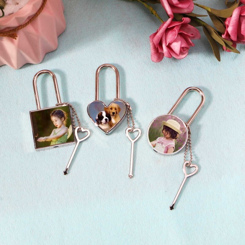 Sublimation Blanks:1set blank heat transfer lock pendant,perfect for dye sublimation or heat transfer applications.