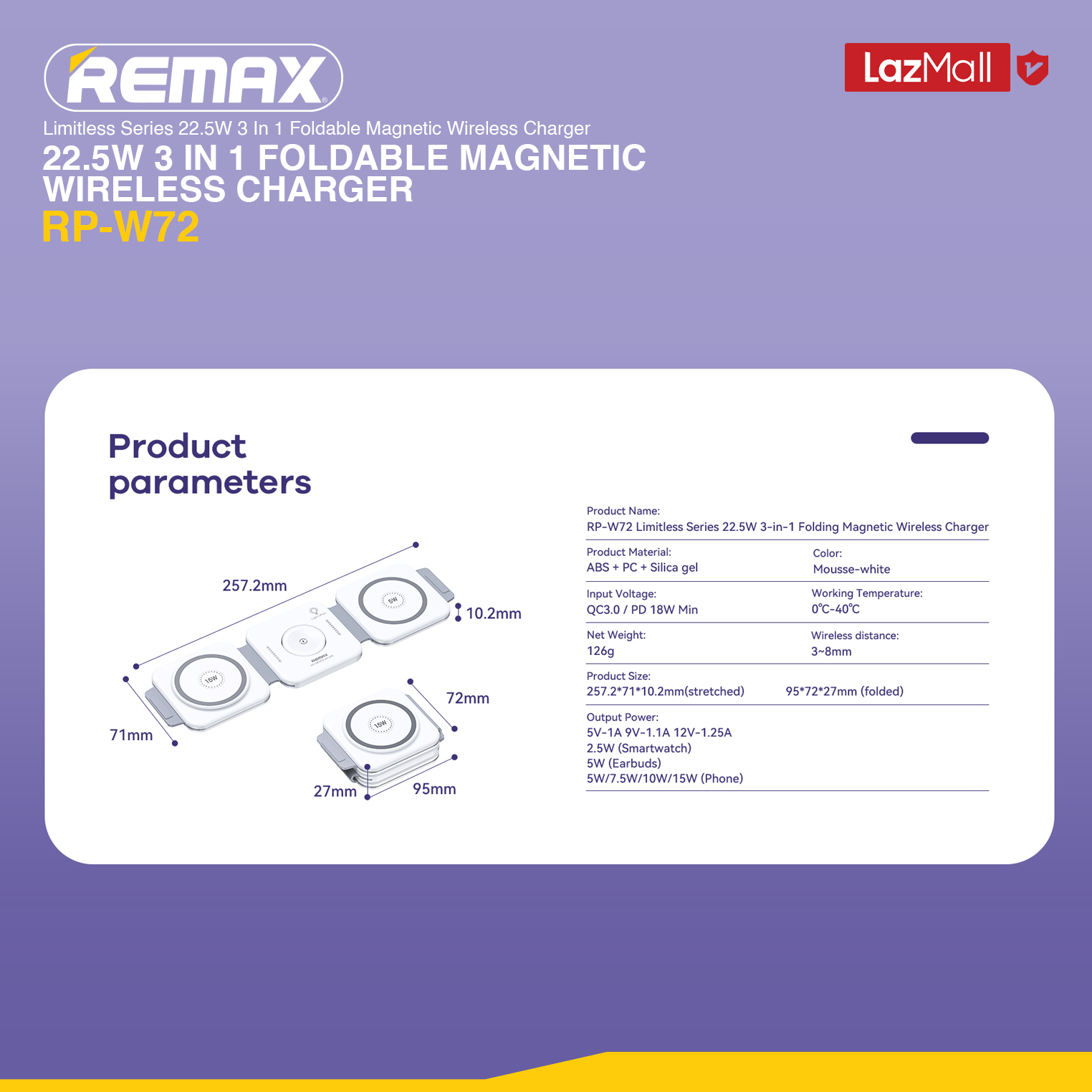 [Remax Energy] RP-W72 Limitless Series 22.5W 3 In 1 Folding Portable Magnetic Wireless Charger