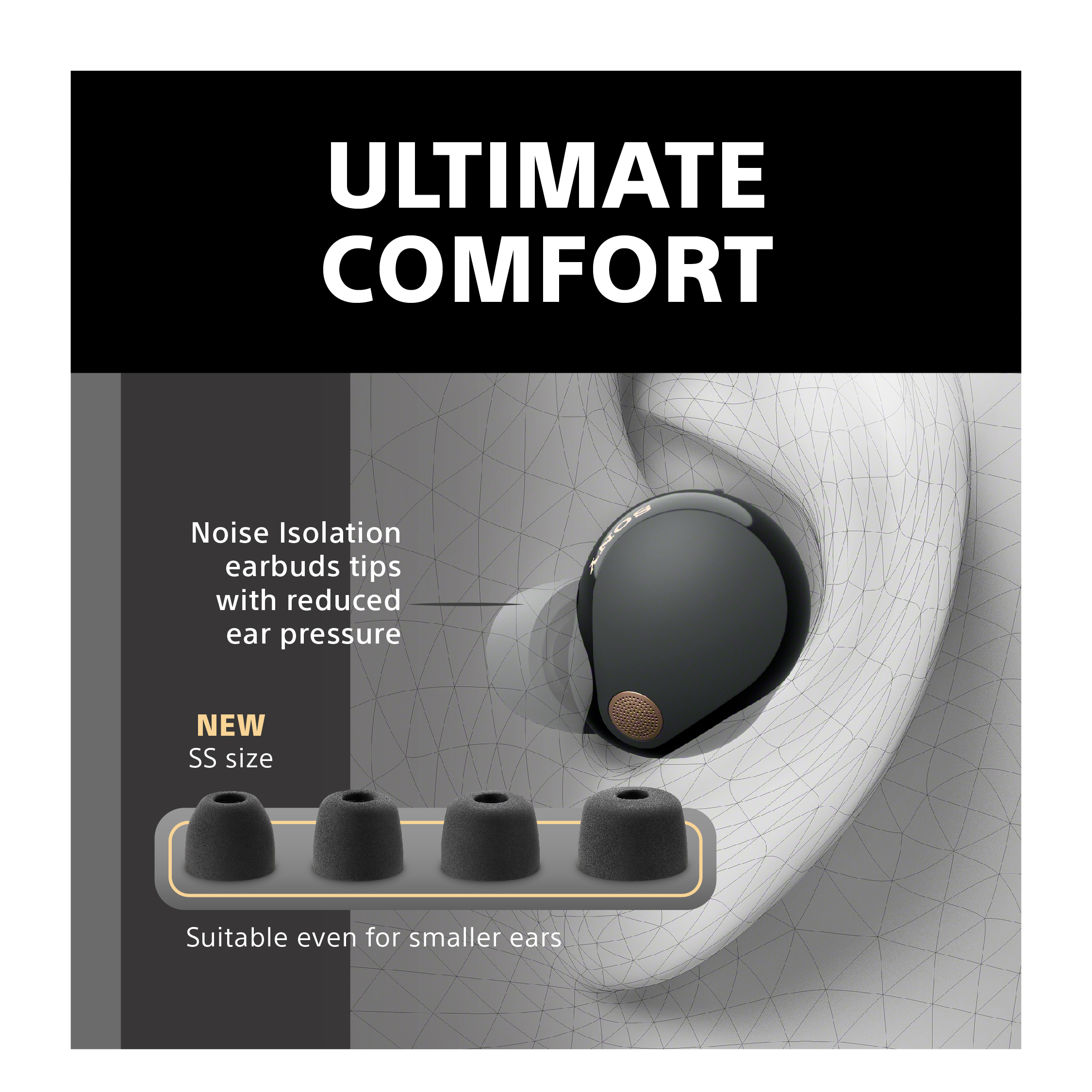 With an improved glossy texture and a more luxurious feel, these earbuds fit comfortably in your ears while keeping out external sounds. By downsizing the headphone body and optimising the placement of the components, the earbud is now approximately 25% smaller and 20% lighter than the WF-1000XM4. We’ve also reduced the size of the charging case, so it will sit even more sleekly in your pocket.