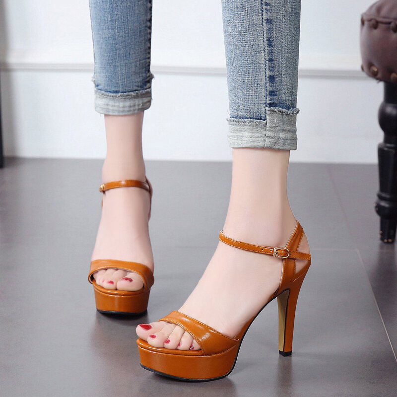 2022 New Korean Style Thin Heeled Sandals Open Toe Buckle High Heels Women's Summer Platform All-Matching Women's Shoes