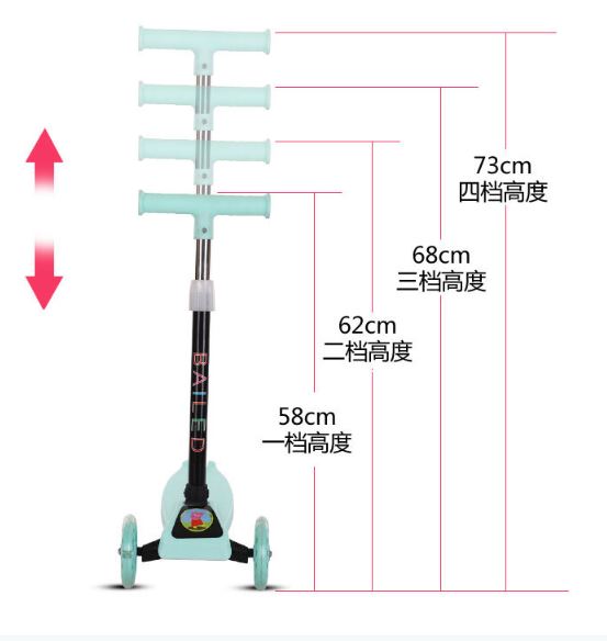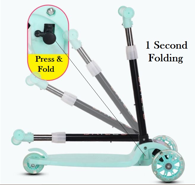 Foldable 3 Wheels Kids Scooter with Light Up Wheels. Adjustable Height. No Assembly Required