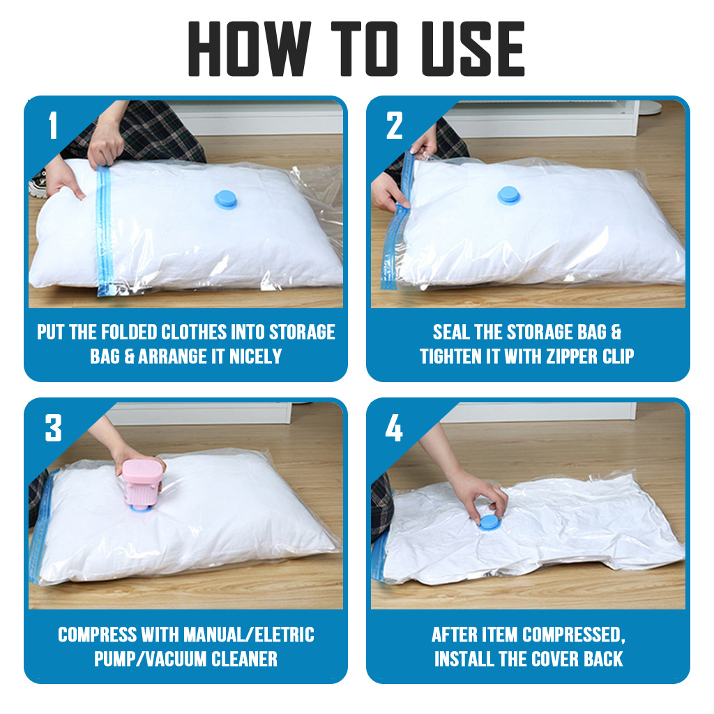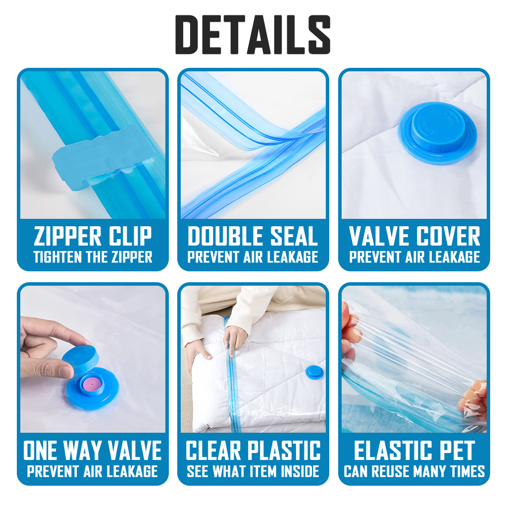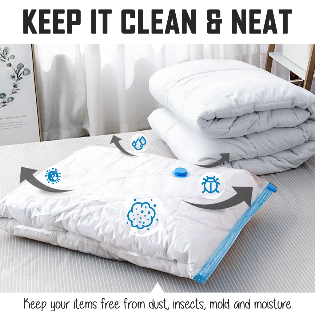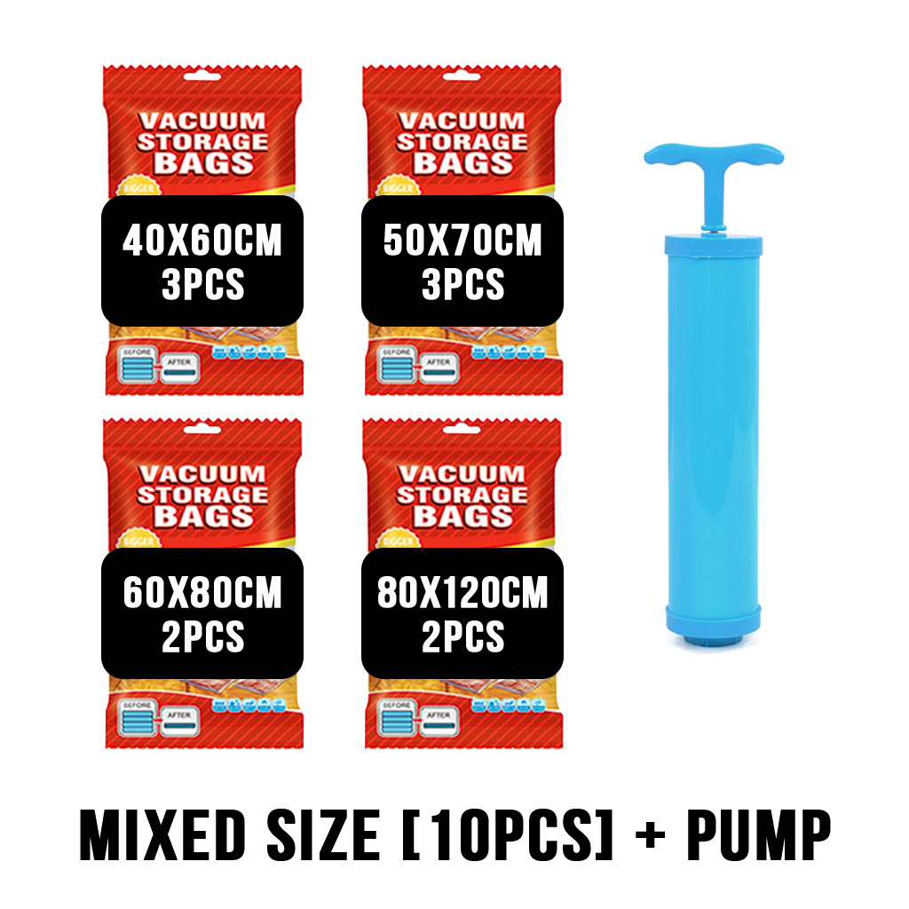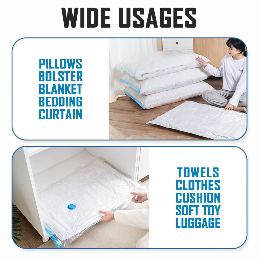 [LOCAL SELLER] FREE Pump + Vacuum Bags Travel Storage for Clothes Reusable Bags Compression Packing For Clothes Clothing Travel with Pump Singapore Set Extra Large Foldable Organizer Laundry Wardrobe