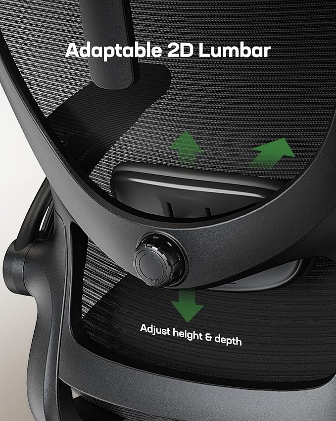 • ADJUSTABLE COMPUTER CHAIR: The home office desk chair lumbar support system adjusts 1.18" forward & backward and 2.16" up & down to properly match your height and body shape. Good lumbar support will minimize strain or pain on the lumbar discs in your spine.