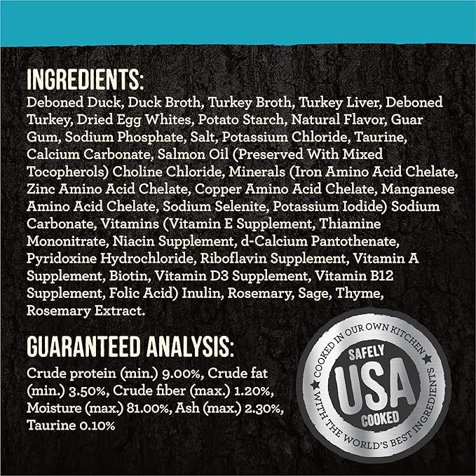 • Real deboned duck is the first ingredient in this wholesome adult cat food pouch. This healthy, high protein cat food helps your cat maintain lean muscle mass