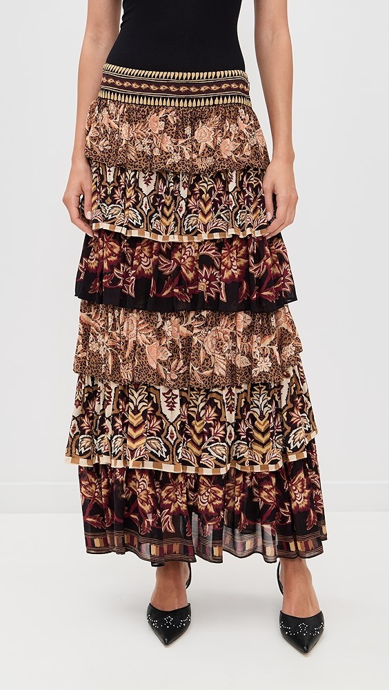 Mixed Scarves Ruffled Maxi Skirt